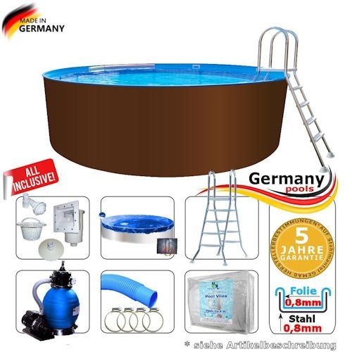 Stahl Pool-Set 800 x 125 cm Komplettset 8 Swimmingpool Rundformpool 8,00 x 1,25 m Holz-Dekor Rundformbecken Set Stahlwandpool Komplettset Rundpool 800 Stahlwandbecken Holzpool rund Pools Garten Pools ohne beton arbeiten 8,0 x 1,2 pools